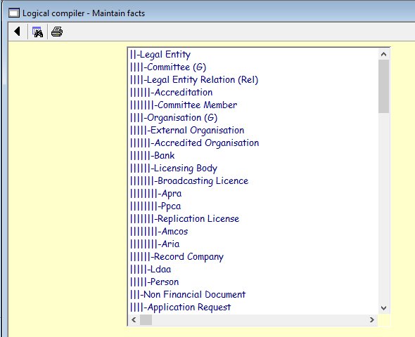 | Data architecture compiler - Facts On clicking on the words 'Facts' from the previous menu the information architect will be presented with the following screen: ![]() |