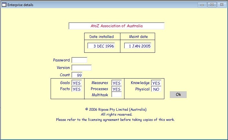 On launching the Ripose compiler, the operator will be presented with the following screen: